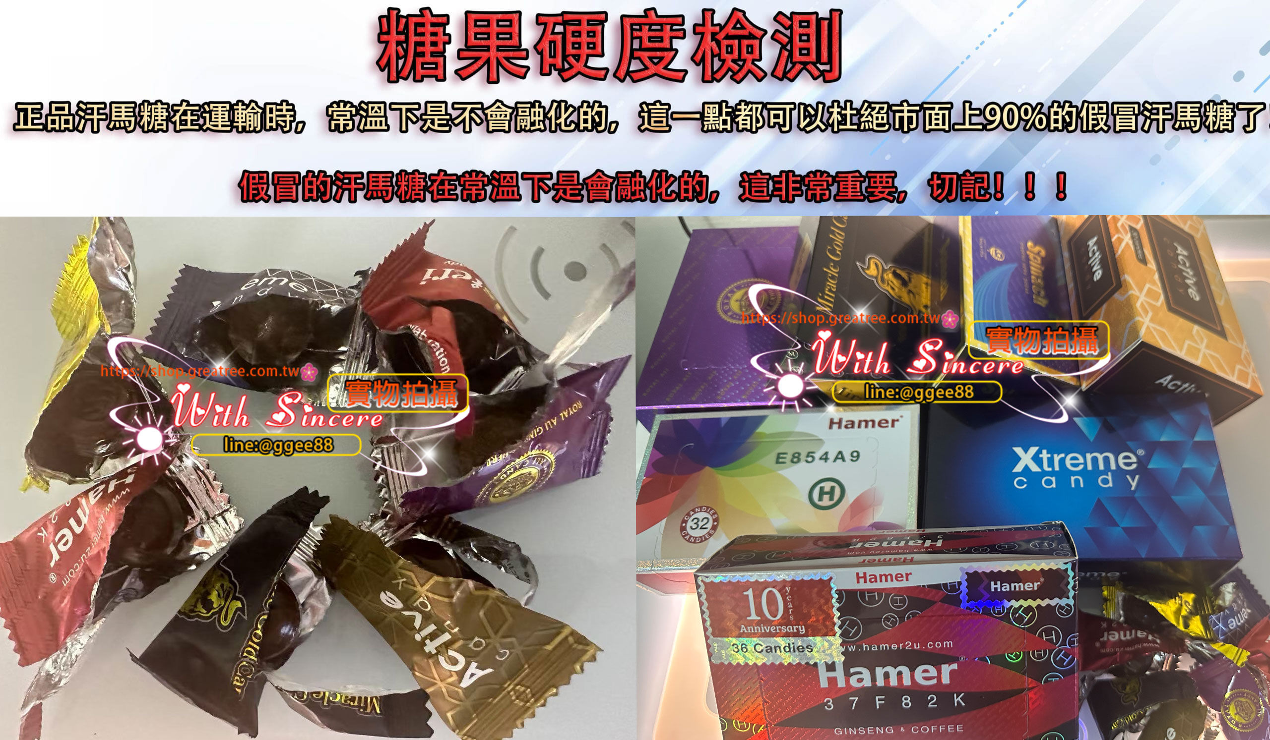 假冒的汗馬糖在常溫下是會融化的,這非常重要,切記!!!