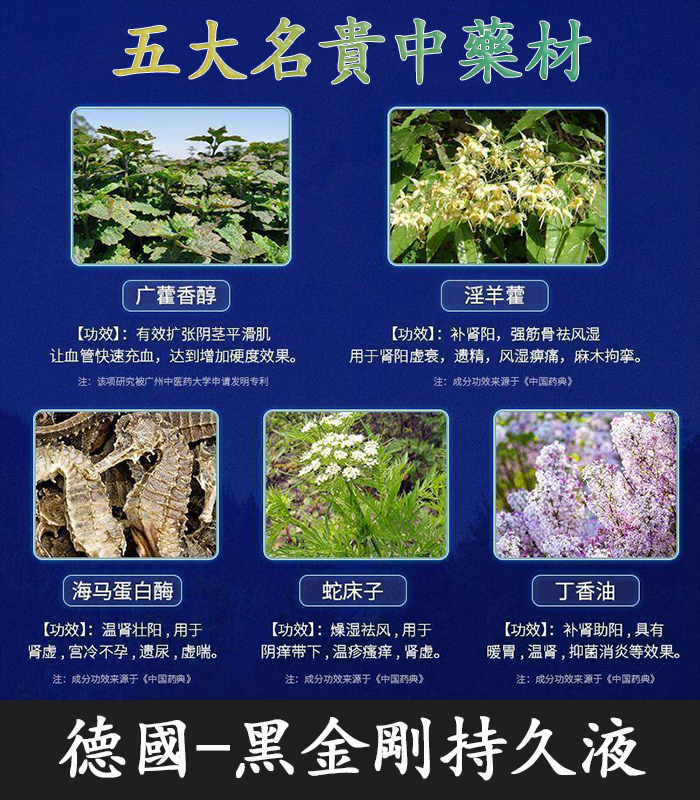 - 巴戟天:天然壯陽成分,提升持久表現。