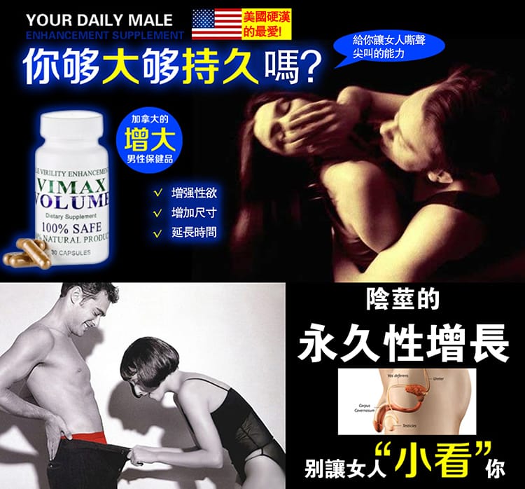 vimax 增大丸是由加拿大15位科學家經過2年深入研究開發的純天然男性保健品。其主要成分來自多種植物提取物,經過加拿大嚴格的科學試驗,證實長期服用不會產生副作用。這款產品不僅能顯著增長陰莖的長度和直徑,還能有效提升性能力、增強性欲,改善勃起狀況。